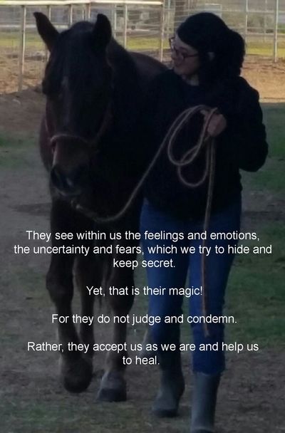 I redirected a lot of my free time to mucking stalls, de-shedding (horses) winter coats, giving treats, and just being still for hours covered in horse ~ I kept experiencing a sense of being present and centered, balanced and free. I found myself wanting to stay in that calm, relaxed state, knowing that it was possible was encouraging. But Life Happens, and when something would start to take that peace away I was now able to realize what was happening. It gave me something to look forward to, knowing I could go back to that peaceful place again and again… I found something that was working for me. My family and close friends were seeing the difference in me, also, and supported my time devoted to Equine Assisted Healing.